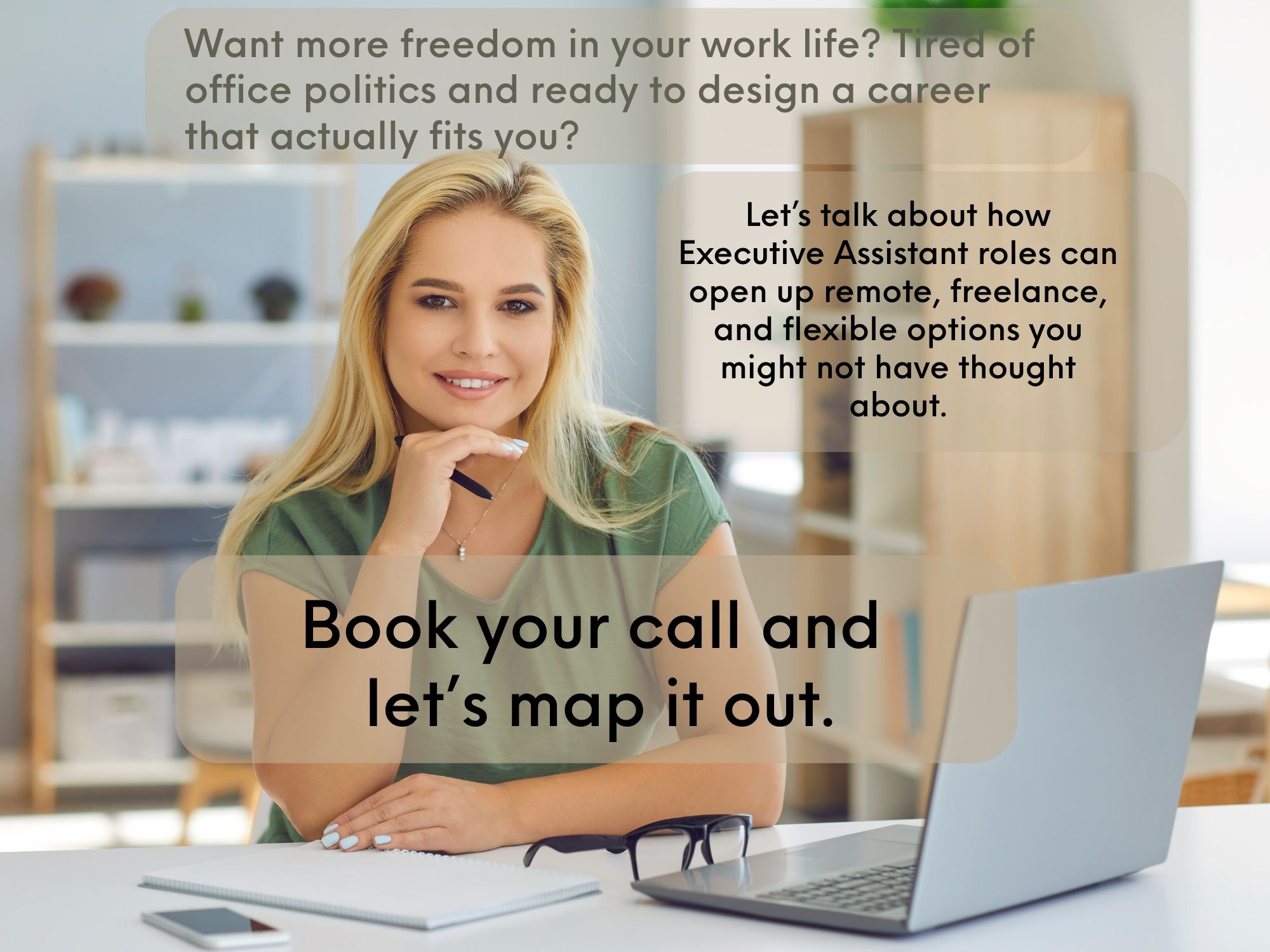 Not sure if becoming an Executive Assistant is right for you? Let’s talk! Whether you’re a mom returning to work or a professional craving a more flexible, meaningful career, this one-on-one consultation is designed to help you.